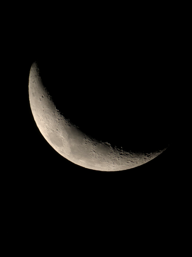 After get alignment settled, the telescope itself started tracing automatically. With some nerve-whacking adjustment of the 3-axis phone support, I took some glamourous photo of moon.