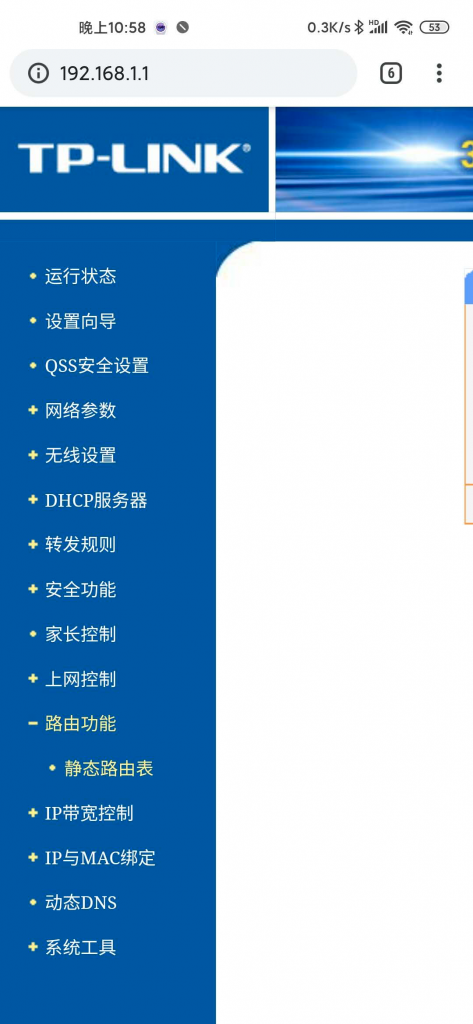 需要注意的是。一是设置界面的WAN口转发要开启。二是旁路路由的设置;大家用电脑界面,自动添加的就可以。三是家里面原来WIFI主路由的路由表怎么设置;如果蒲公英的VPN的IP是192.168.1.105。以TP-LINK为例,也就是先找到下面这个菜单
