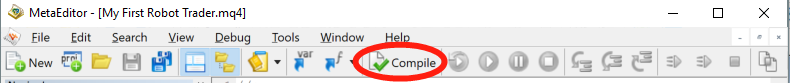 You can click either button to get your coding started. If you open the trader, you can open the editor from trader by clicking the book-like button circled below. Moreover, if you already set your robot trader up, you can enable the autotrading by activating the “AutoTrading” button which I will talk this in detail.