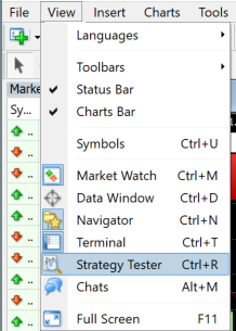 Then open the trader and enable Strategy Tester from View in the menu.