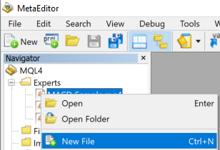 Once you opened the editor, right click files in Experts and New File button.